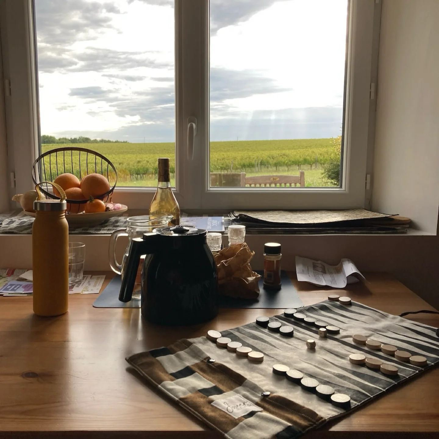 Prêt·e à lancer une partie de backgammon avec vue sur les vignes de Charente (septembre 2024).